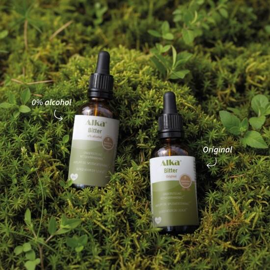 Alka® Bitter is verkrijgbaar in twee varianten: Alka® Bitter Original en Alka® Bitter 0% alcohol.