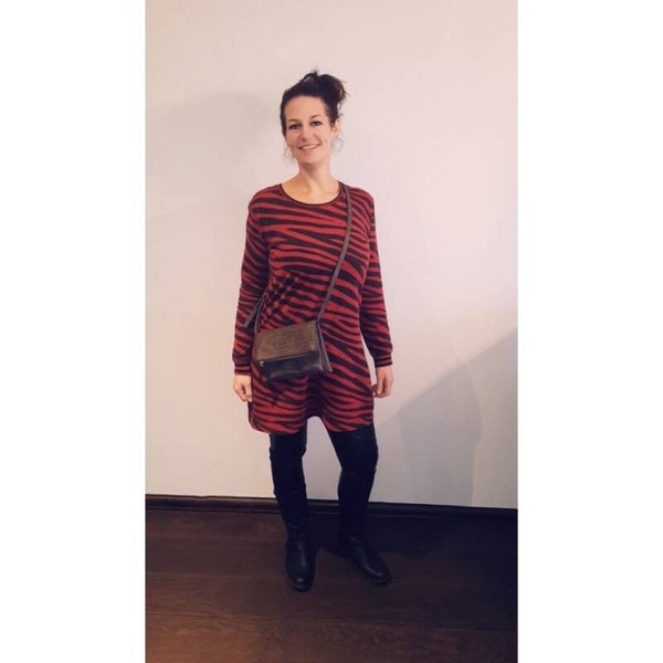 Details: de tas is dubbel gevouwen.