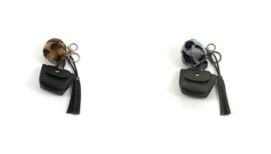 Sleutel- / tassenhanger tasje met een leuke panter pompon en kwast. Altijd bij de hand en goed terug te vinden in je tas.